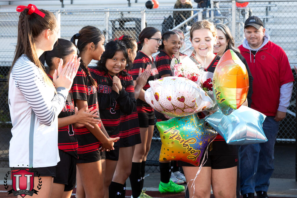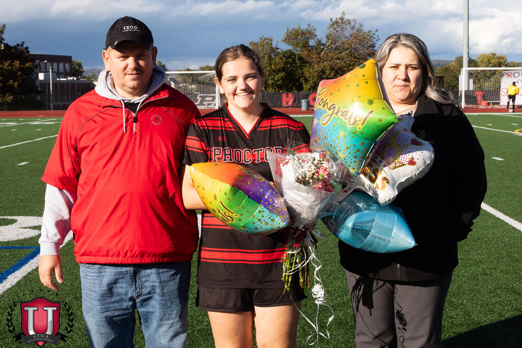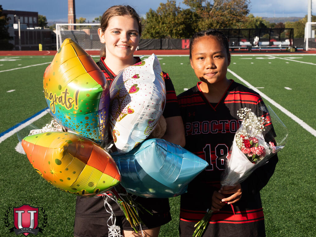 Proctor Girls Varsity Soccer ले हाम्रा वरिष्ठ खेलाडीहरूलाई मनाउने र क्याम्डेन विरुद्धको जीतको साथ समाप्त भएको राम्रो रात बिताएको थियो! Zlata Seho लाई उनको सिनियर नाइटमा २ गोल र १ असिस्ट गरेकोमा बधाई छ! ४ गोल र १ असिस्ट भएकोमा राईया प्याटरसनलाई चिच्याउनुहोस्।