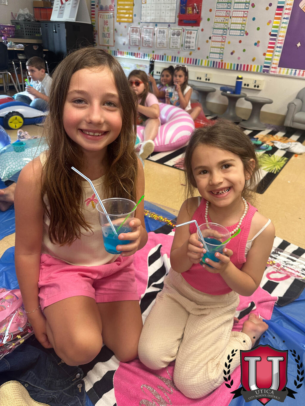 Albany School First Graders made a SPLASH this week and hosted their "Pool Day" event! The students traded their desks for floats and had so much fun learning! They made a fun project, practiced their sight words, followed instructions to make themselves a snack and sipped on a sweet drink!