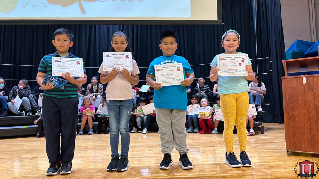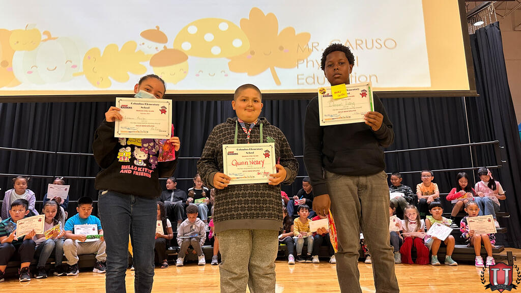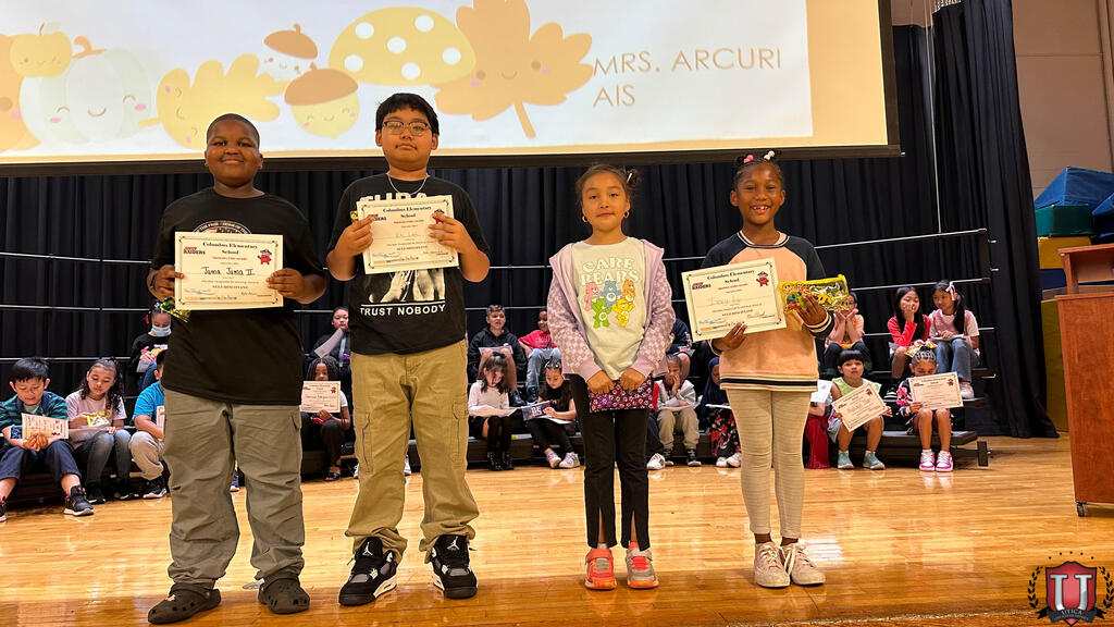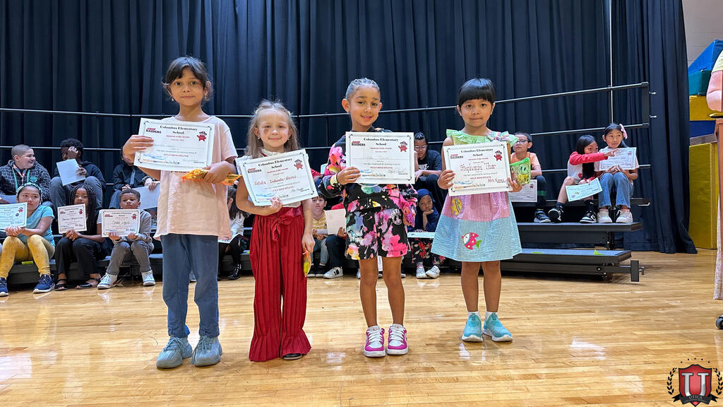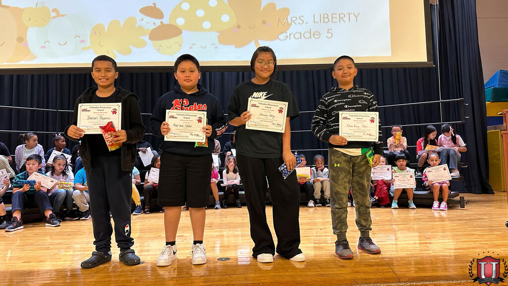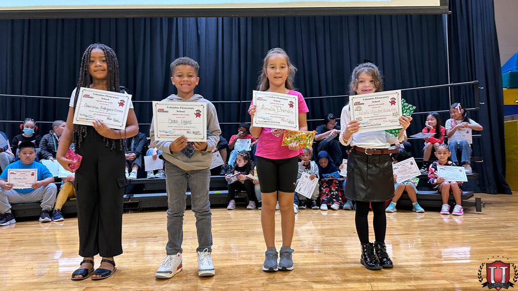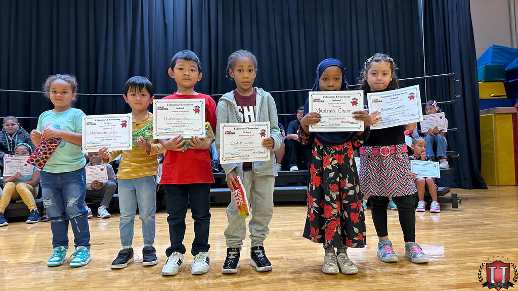 सेप्टेम्बरको सकारात्मकता परियोजना पुरस्कार सम्मेलनका लागि कोलम्बस स्कूल पुरस्कार प्राप्तकर्ताहरू। यो महिना चरित्र विशेषता आत्म अनुशासन थियो।