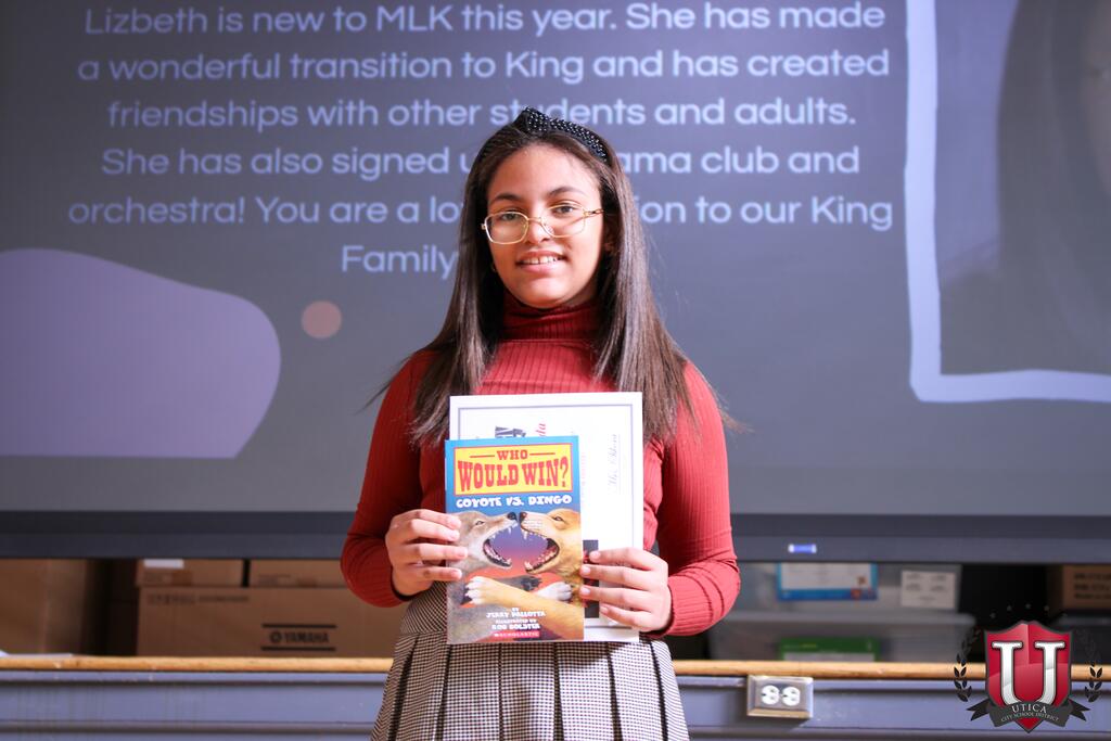 MLK शिक्षकहरूले यस महिनाको चरित्र विशेषता प्रदर्शन गर्ने 40 विद्यार्थीहरूलाई मान्यता दिए: बहादुरी! हामीले विद्यार्थीहरूलाई एक समारोहमा सम्मान गर्यौं जुन परिवारहरू उपस्थित हुन सक्षम थिए। प्रत्येक विद्यार्थीले ICAN द्वारा हाम्रो स्कॉलस्टिक बुक फेयरमा खरिद गरिएको पुरस्कार र एउटा पुस्तक पाए। कार्यक्रमपछि सबैले सँगै खाना खाए ।