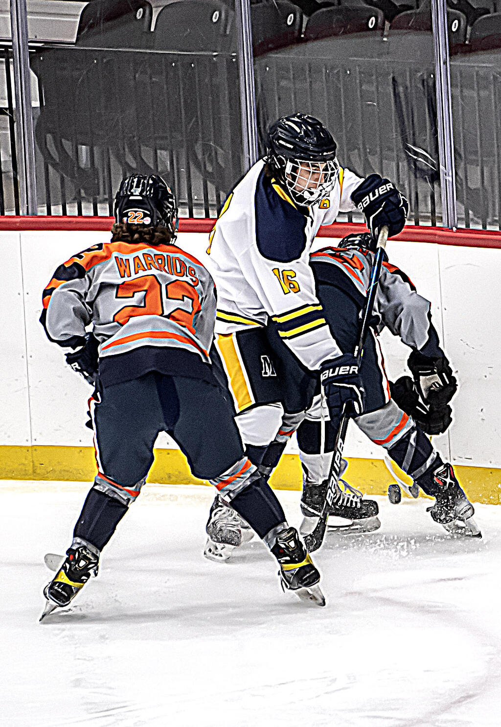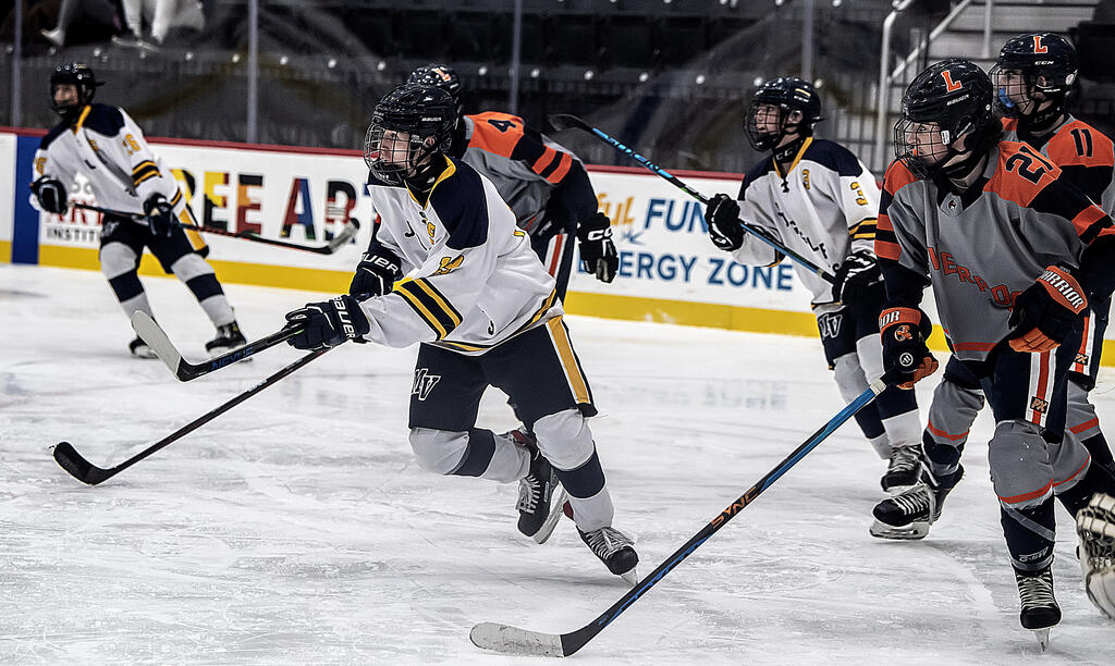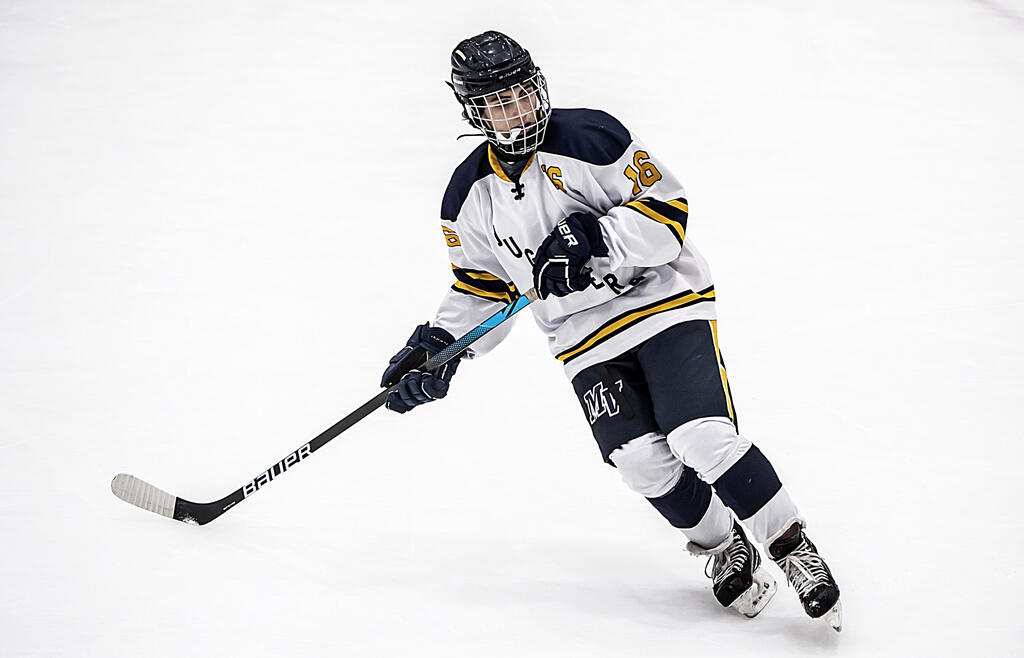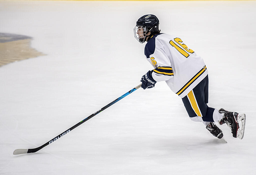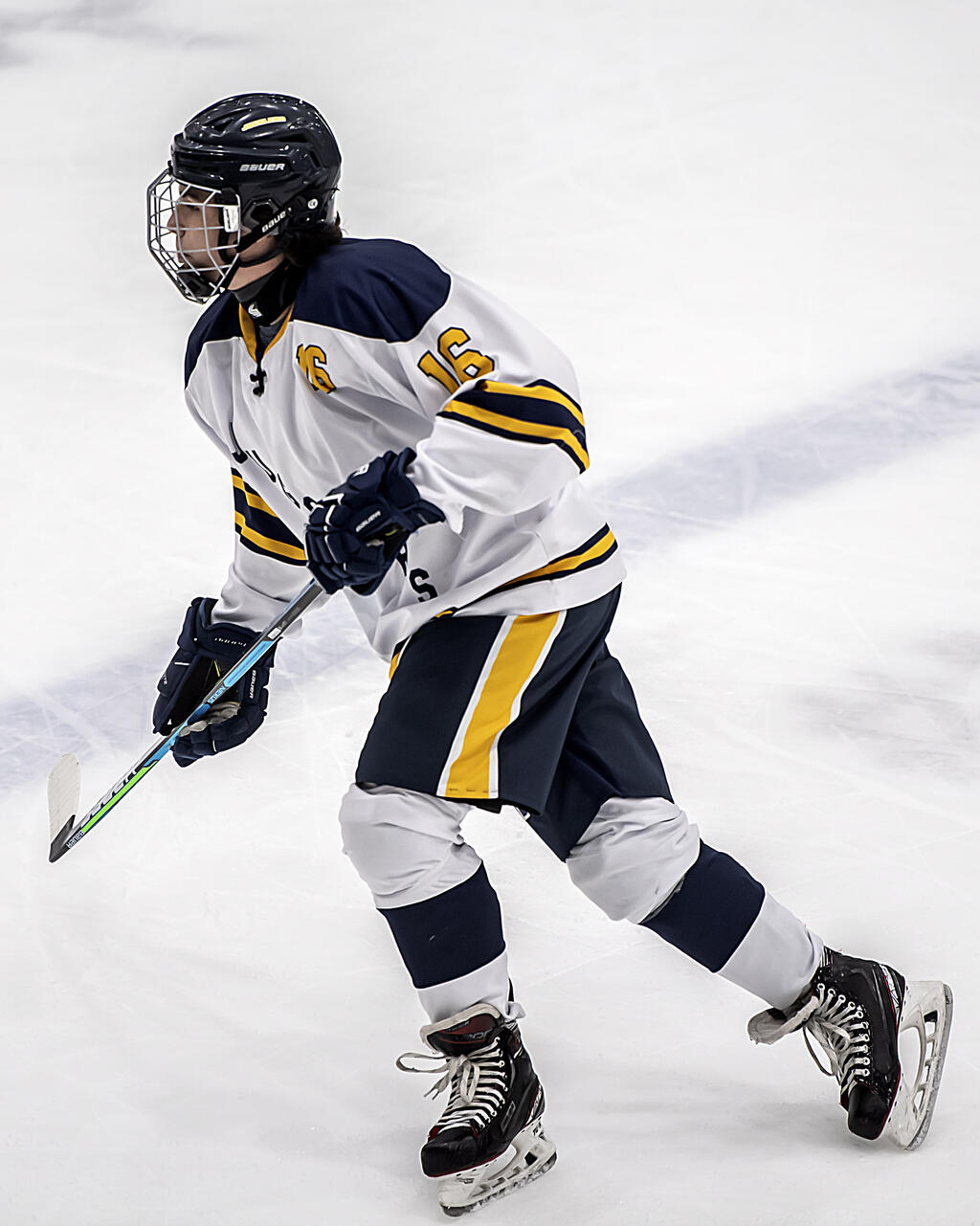 प्रोक्टर भर्सिटी हकी खेलाडीहरू # 16 निक माजा र # 19 मोहक भ्याली जुगलर्सका काइल म्याकरेनोल्ड्सले नेक्सस सेन्टरमा शिक्षक प्रशंसा नाइटको समयमा प्रोक्टर्स एलीशा अब्बेलाई प्रशंसा गरे।